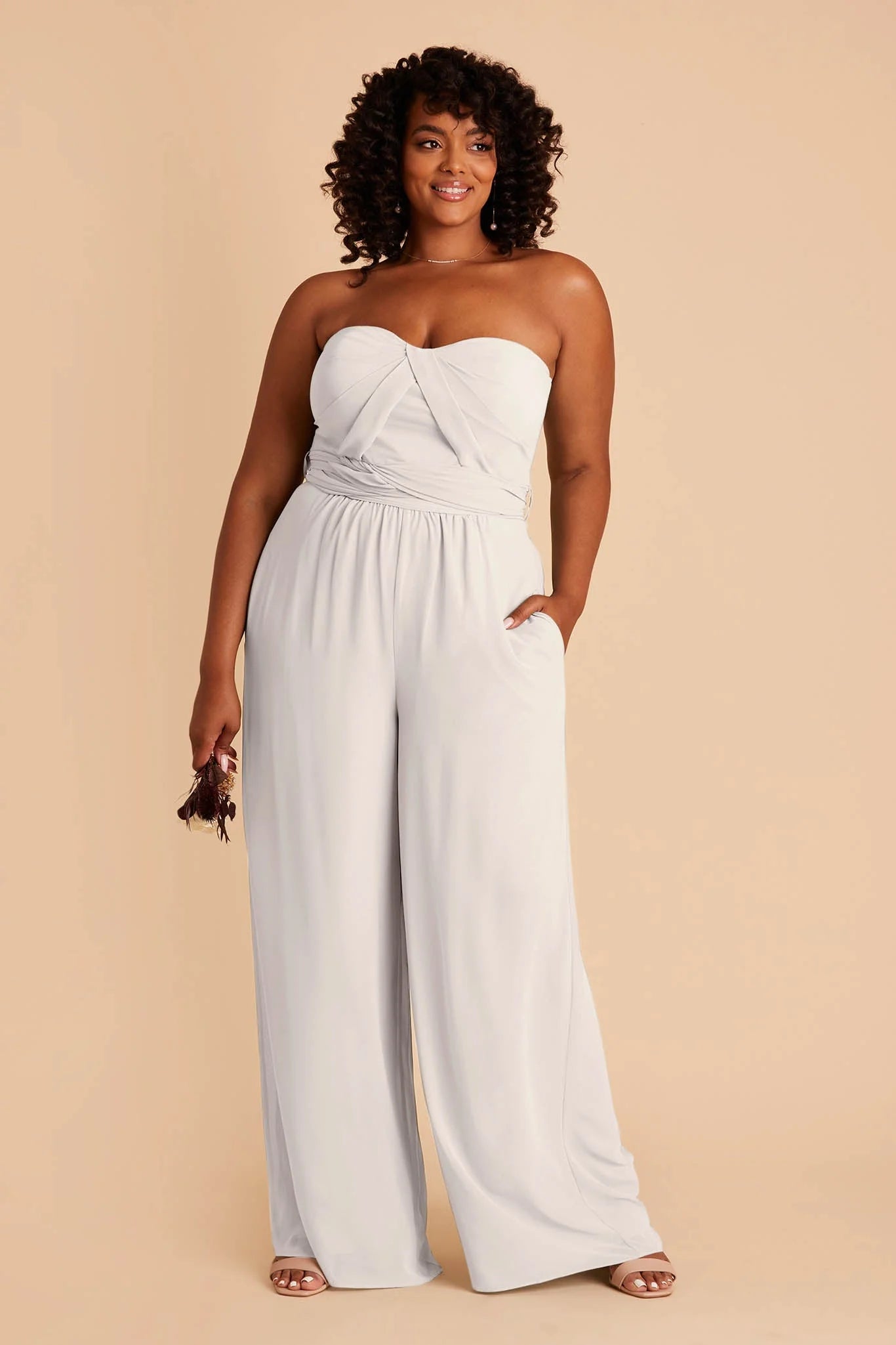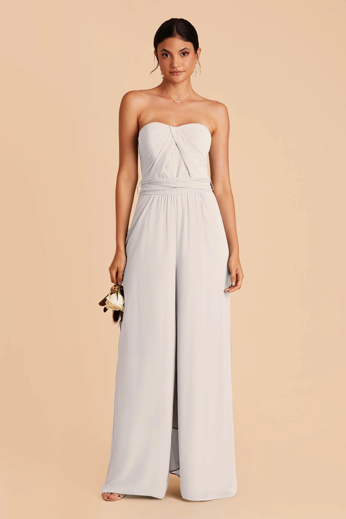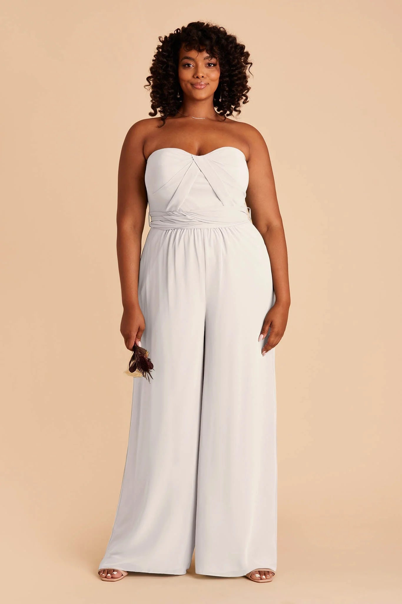 On top, Gigi is reminiscent of our Grace Convertible Dress. She has a pleated sweetheart bodice and two extra-long streamers that allow you to create a near-endless number of necklines. Gigi has bra cups for extra support and hidden pockets, so you’re never too far from your lip gloss. Just a note, the spaghetti straps are super long, so you might want to alter them, depending on which way you decide to arrange the top. On the bottom, she's got PANTS! Gigi is our very first bridesmaid jumpsuit and needless to say, we're so in love.