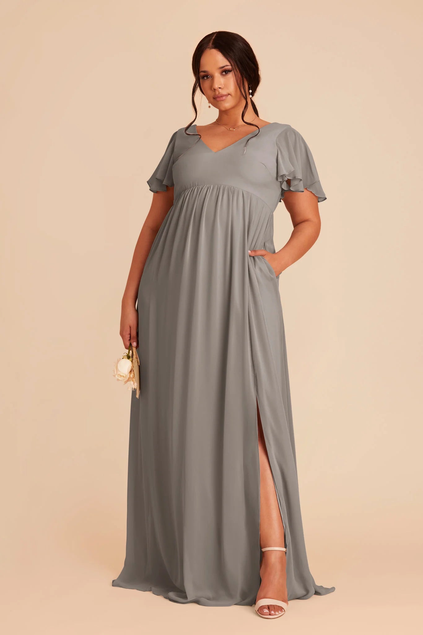 A sleeve empire gown that's baby-bump friendly.