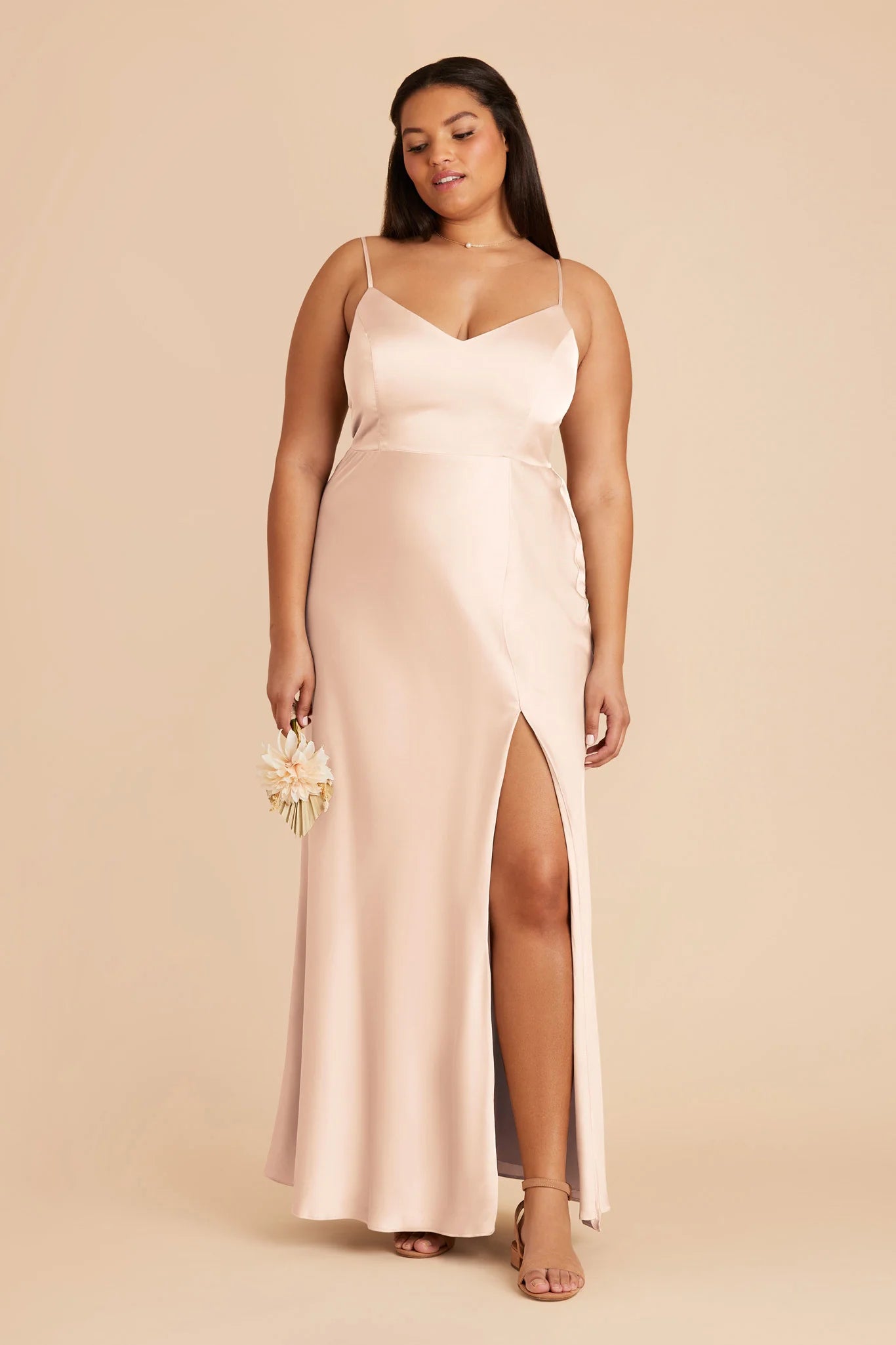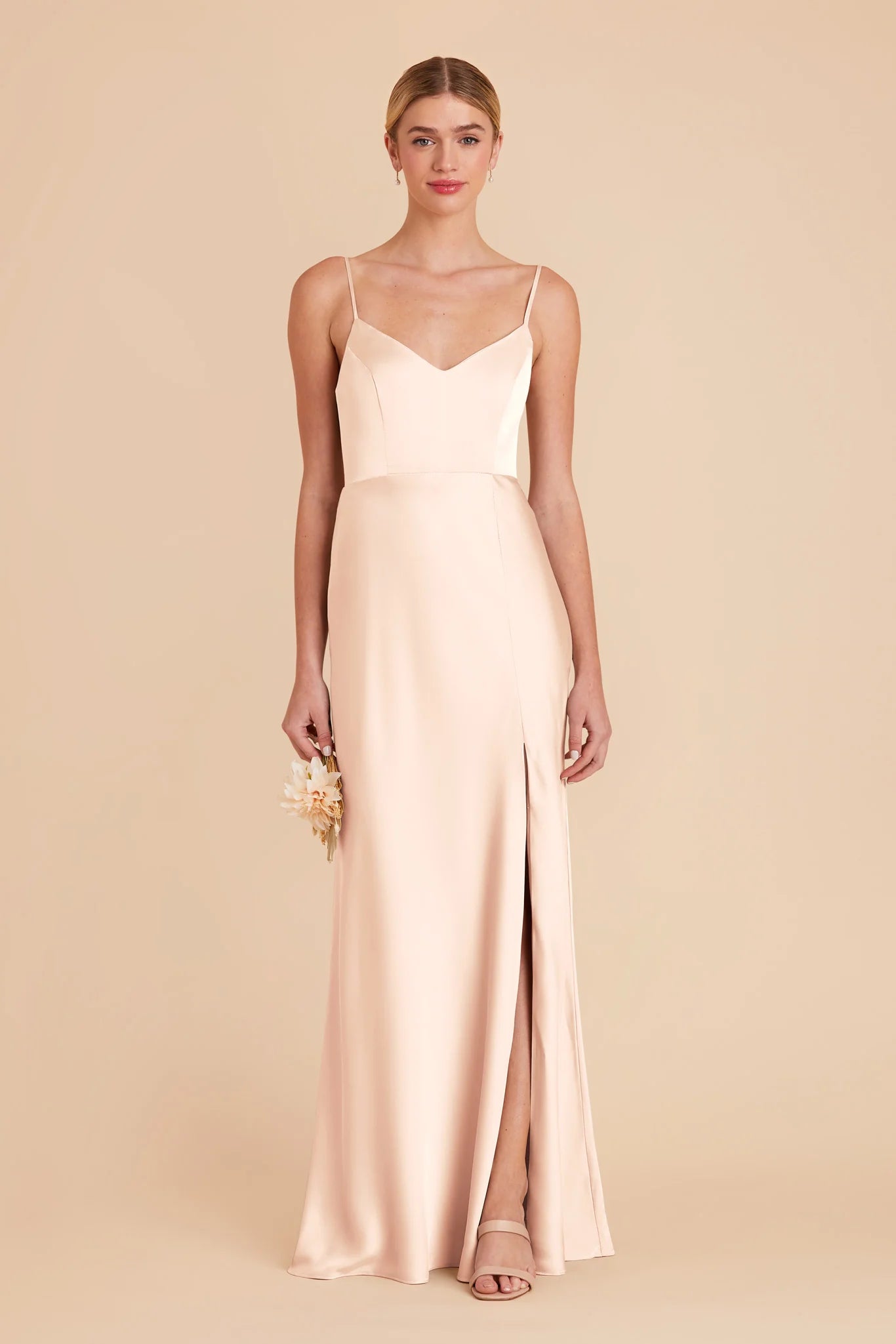 Sweet meets sultry. This V-neck spaghetti strap dress features a flattering silhouette and a chic leg slit.