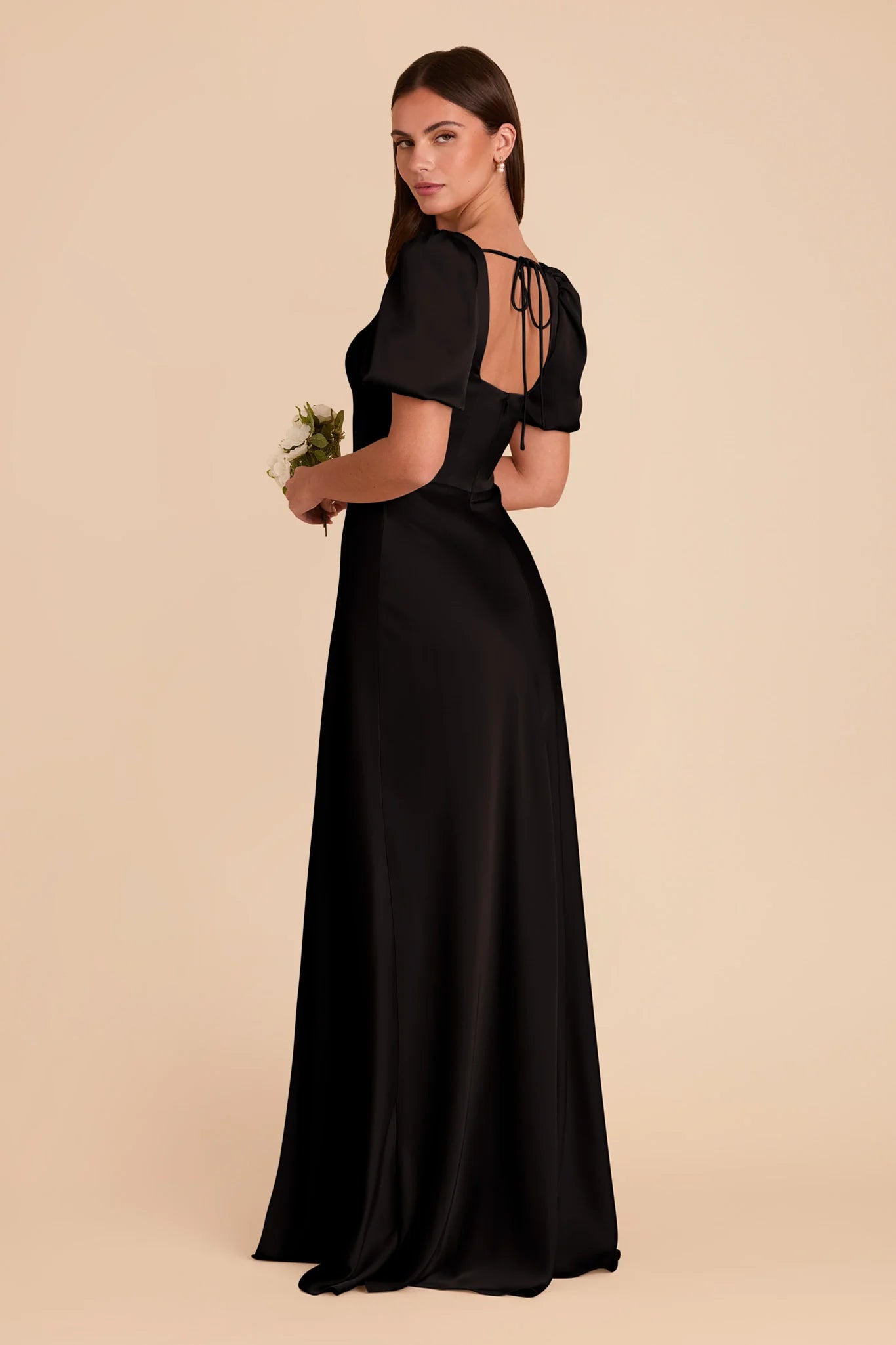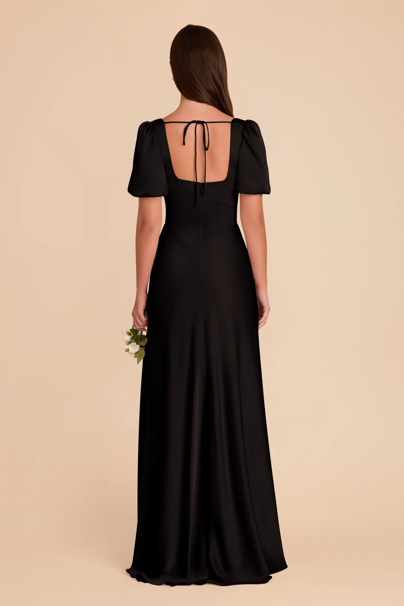Complete with a square neckline and airy short sleeves, this whimsical gown is nothing short of dreamy.