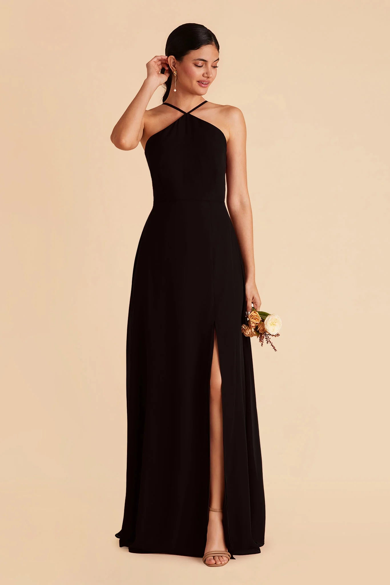She's serving major '90s movie poster vibes! This gown features a modern halter neckline, a stunning slit, and a flowy silhouette.