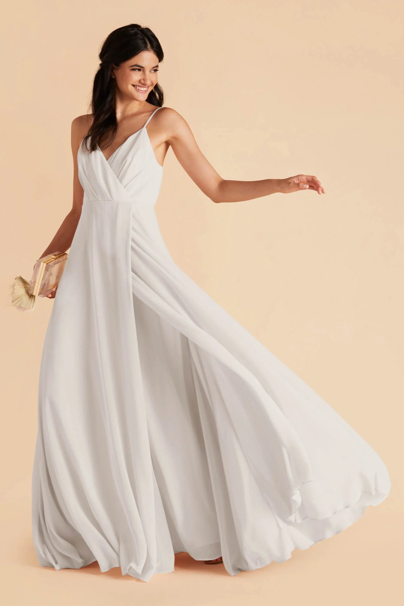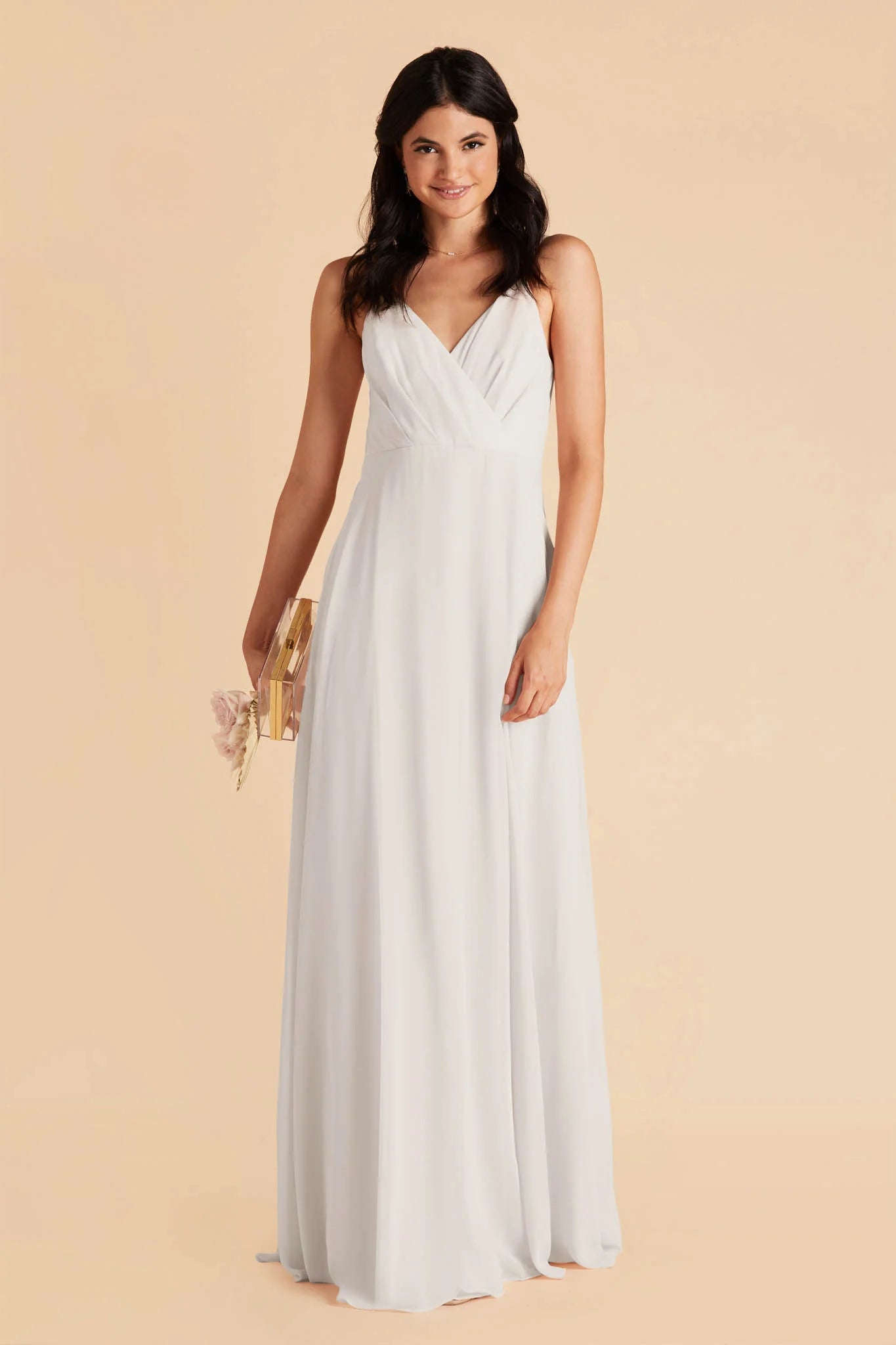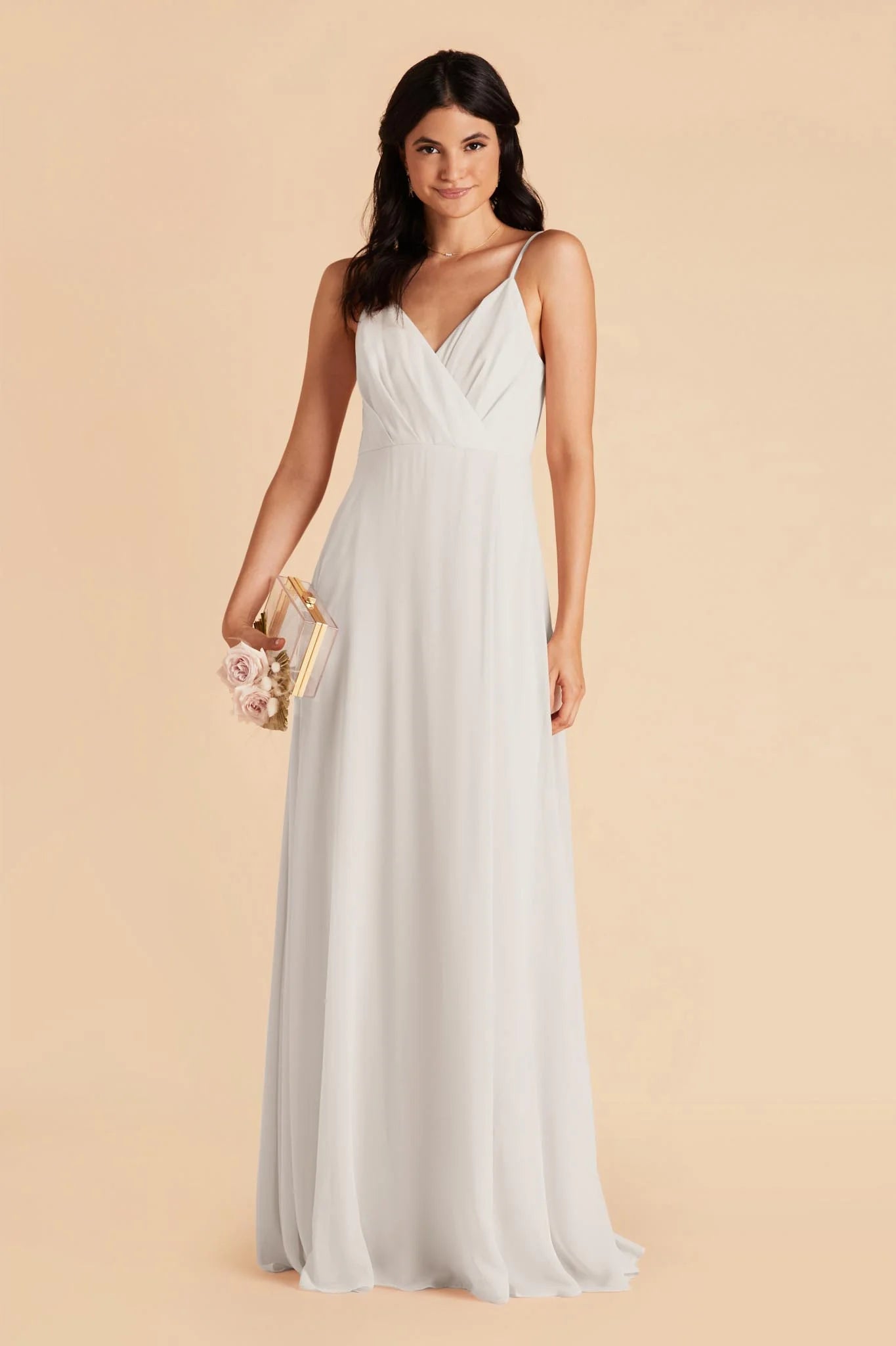 A dress so elegant that it could even make Grace Kelly blush. You’ll get swept away in your bridesmaid’s duties in this chiffon dress that flows like a soft river wrapped around your body. Its V-shaped neckline subtly accentuates your collarbone for an elevated and sophisticated look. The best part? Wearing our Kaia bridesmaid dress is like sleeping in a cloud of comfort and style with its strategically placed and slightly raised elastic-backed empire waist that leaves the perfect amount of space for effortlessly walking down the aisle and dancing the night away.