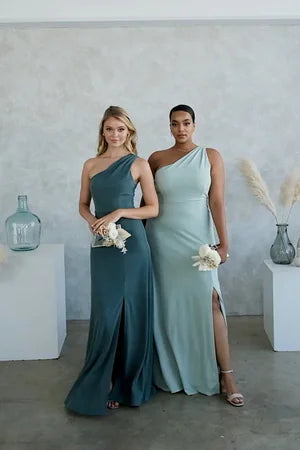 Be breathtakingly beautiful in this gorgeous crepe, one-shoulder bridesmaid dress.
