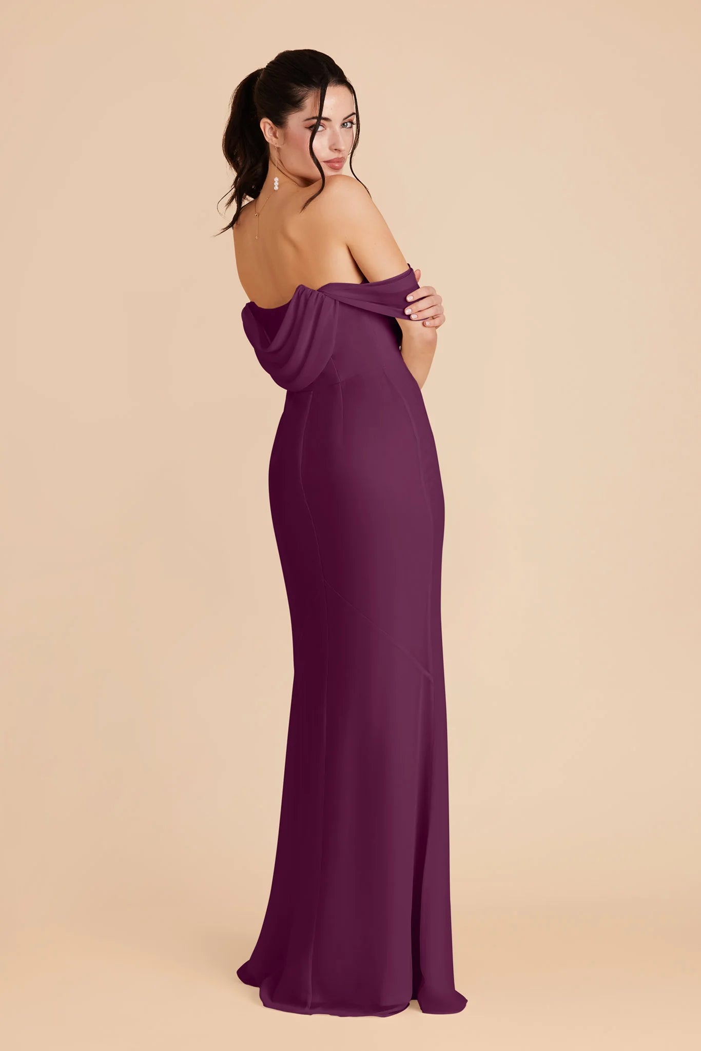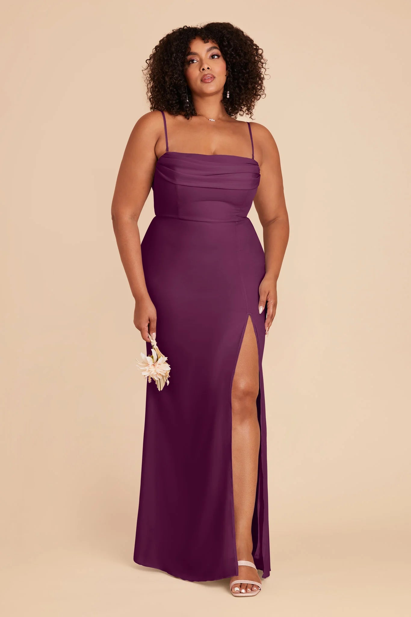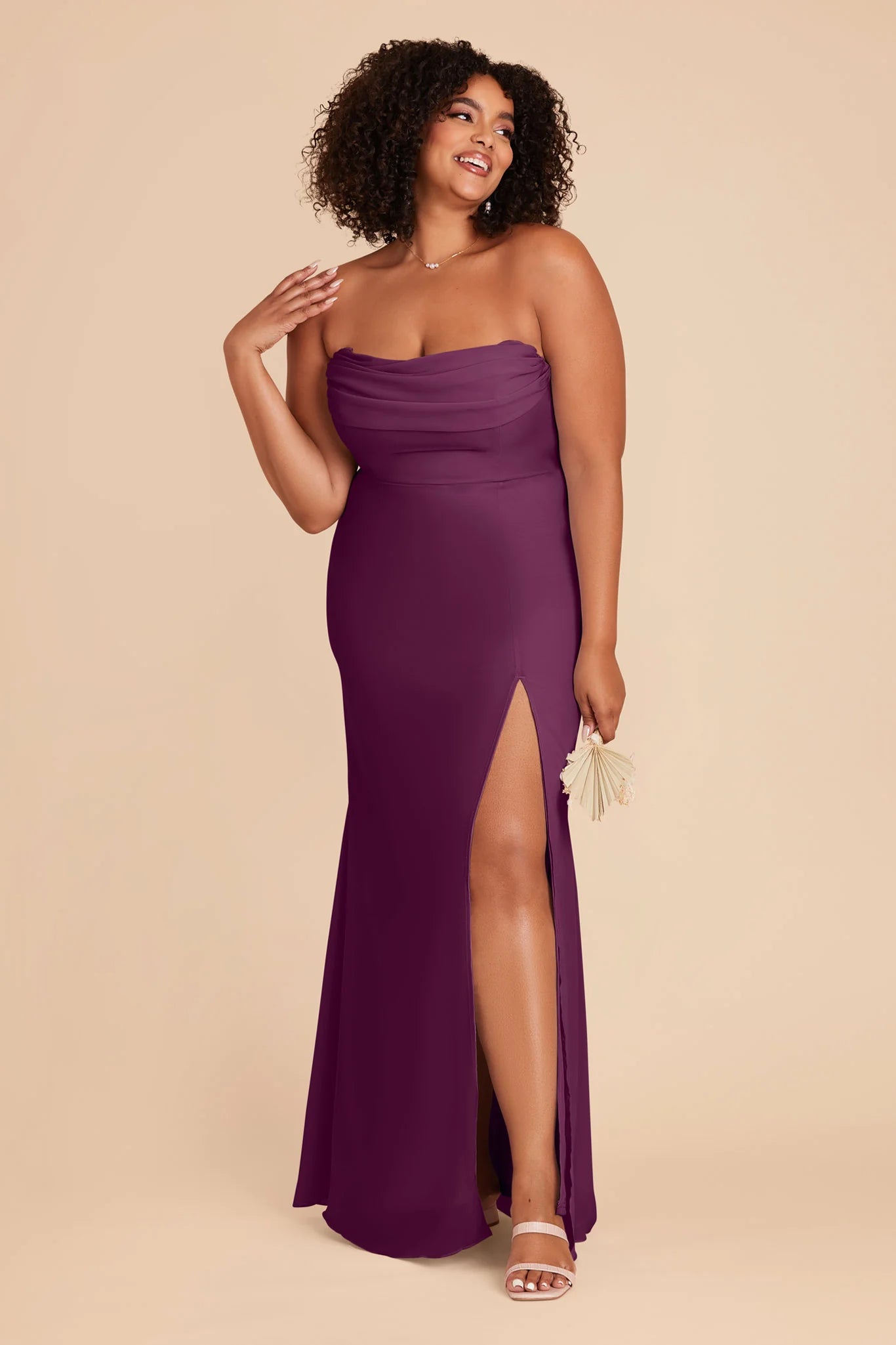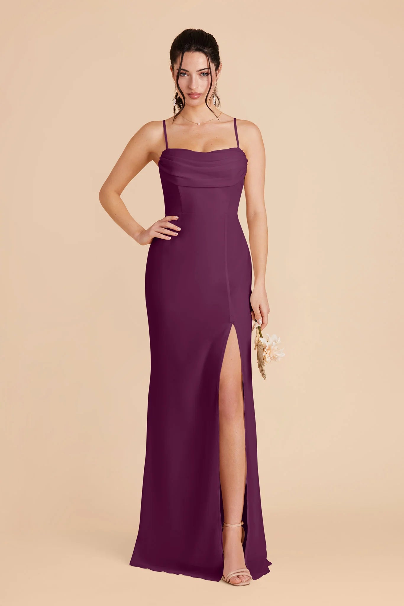 Wrap yourself in romance with a cowl detail in front and back, removable drape sleeves, and a mermaid skirt that brings the best kind of drama.