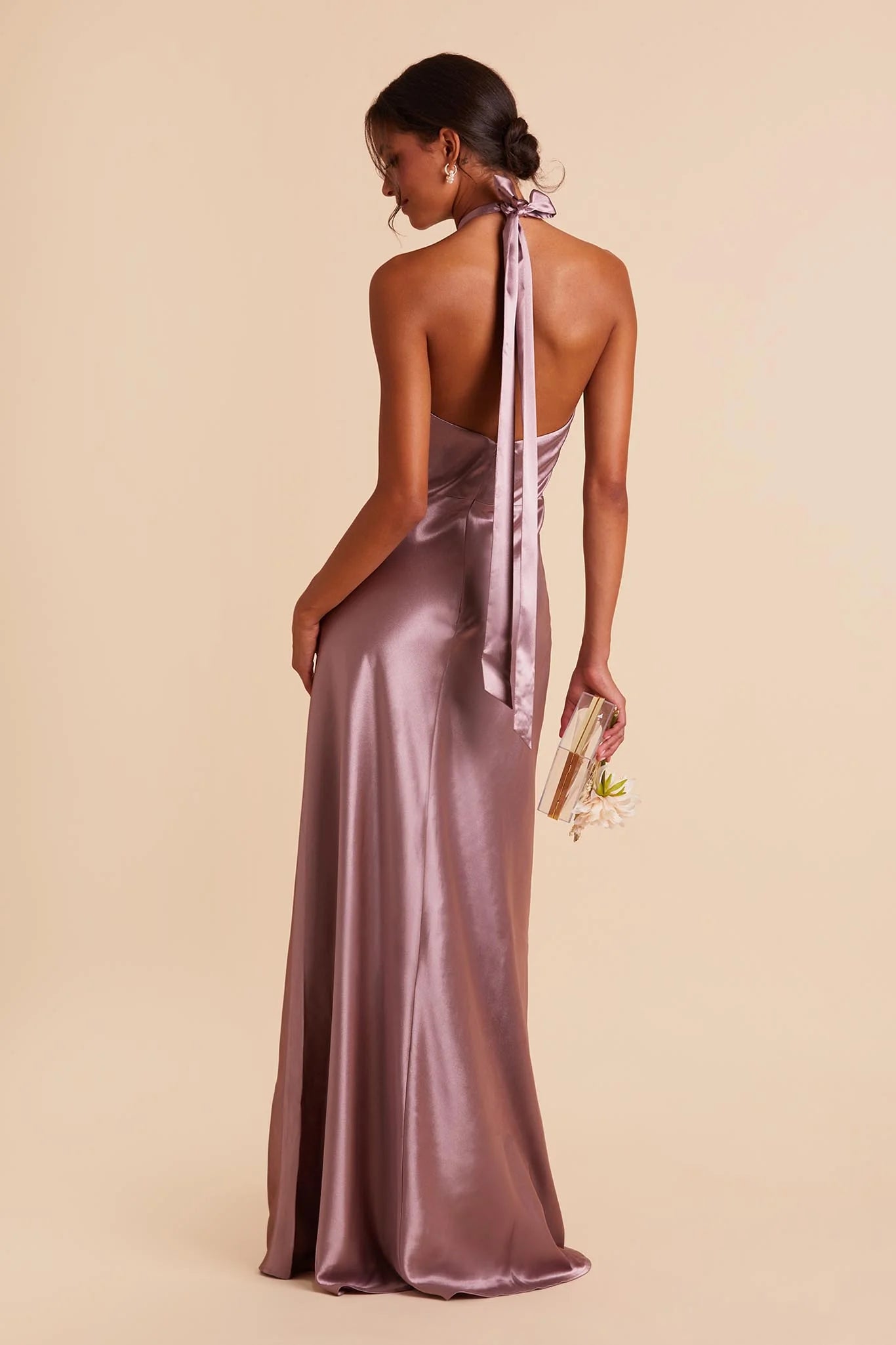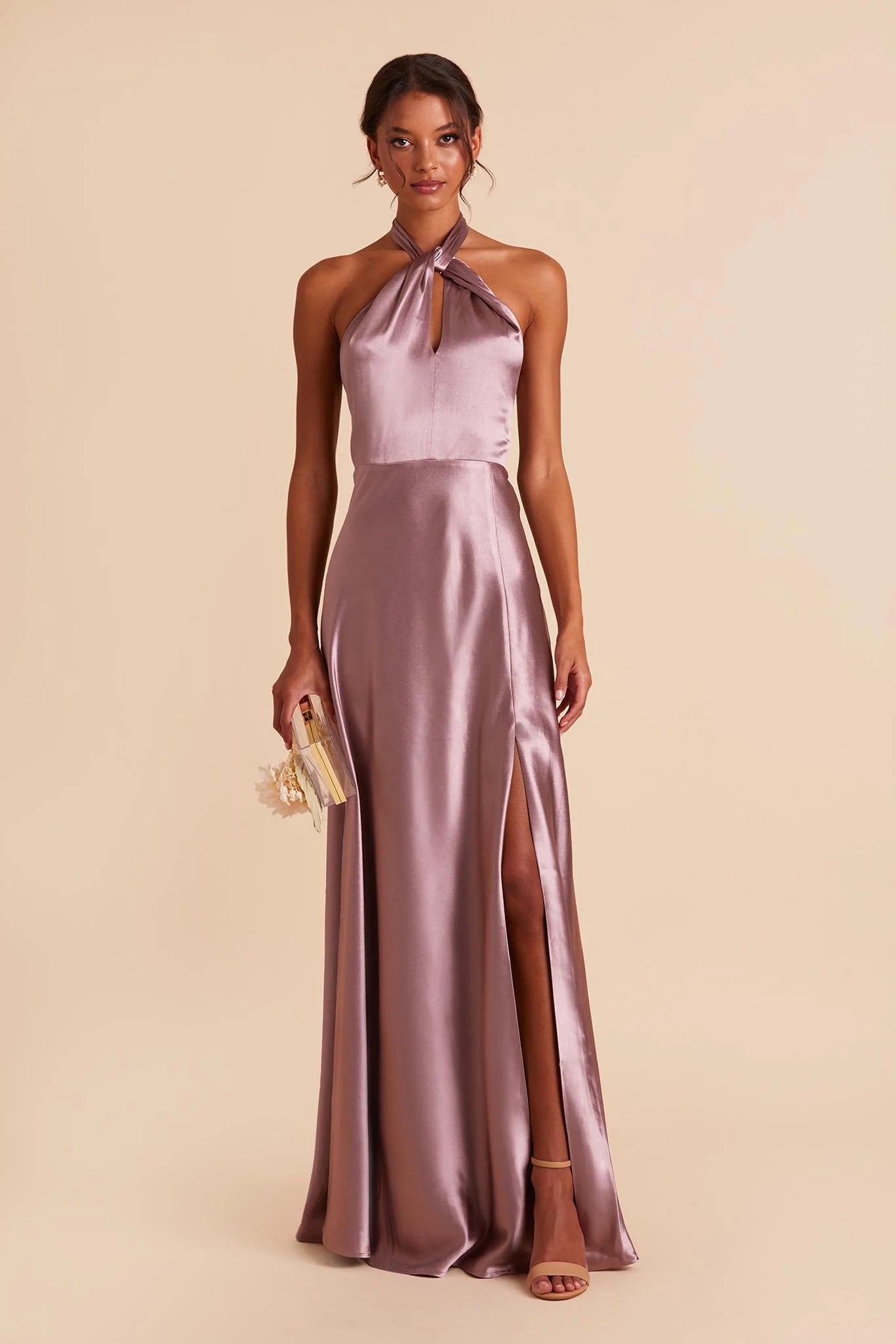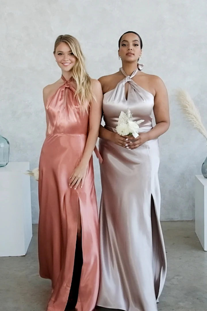 This dress is all about timeless elegance! The eye-catching knotted halter neckline pairs perfectly with the universally flattering A-line skirt and leg slit.