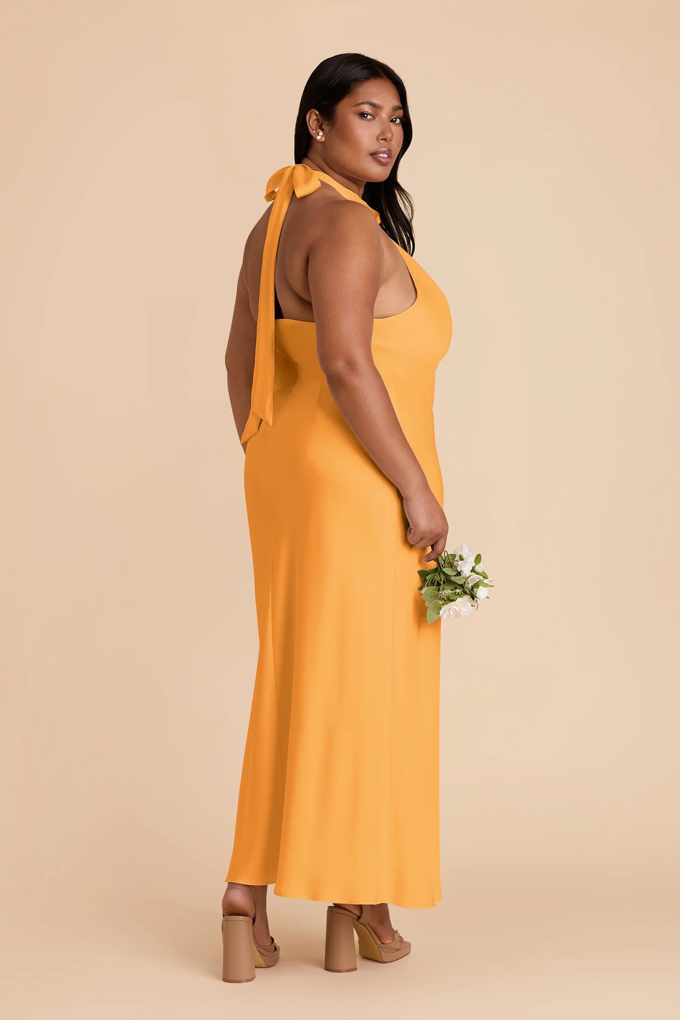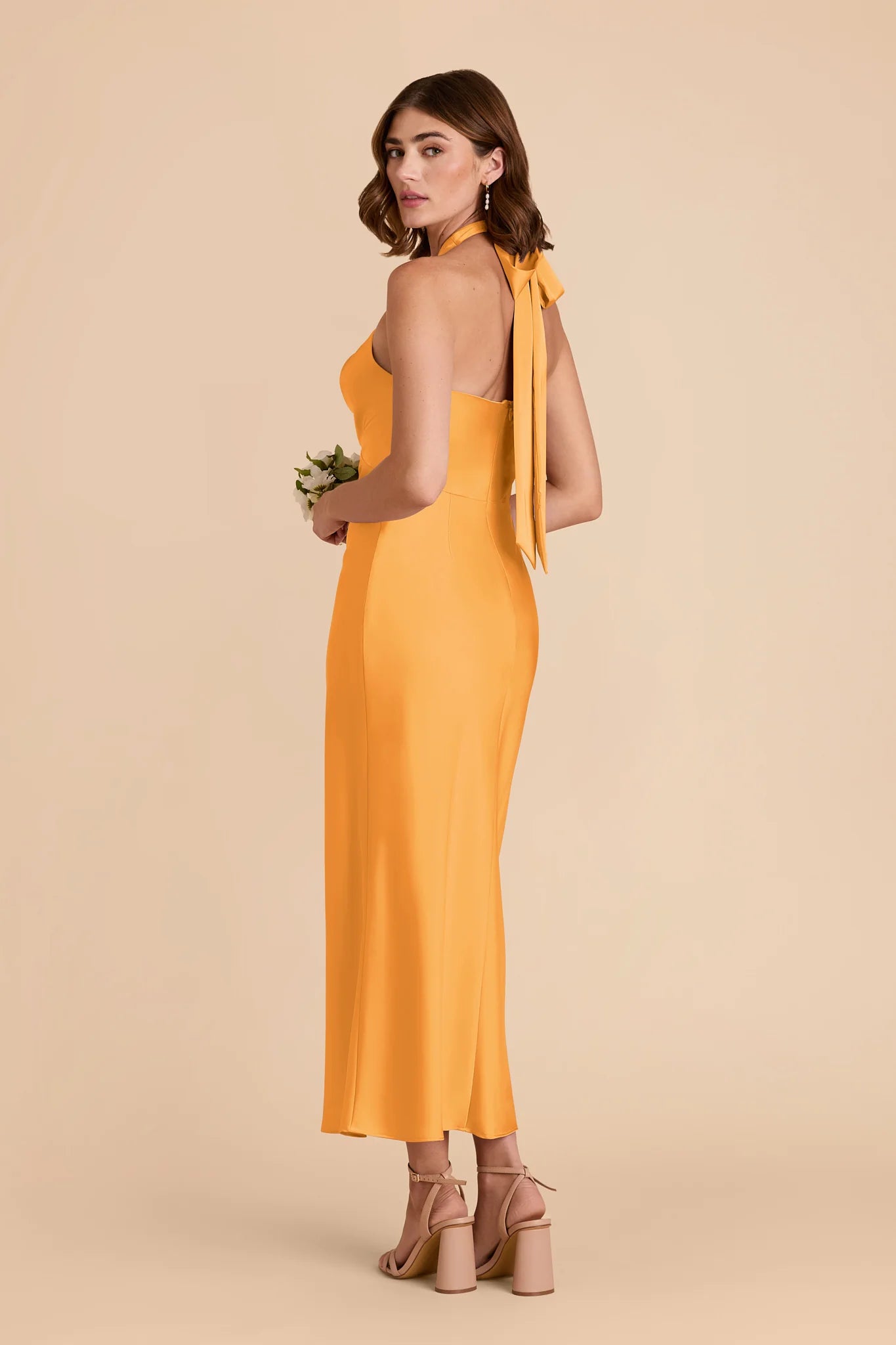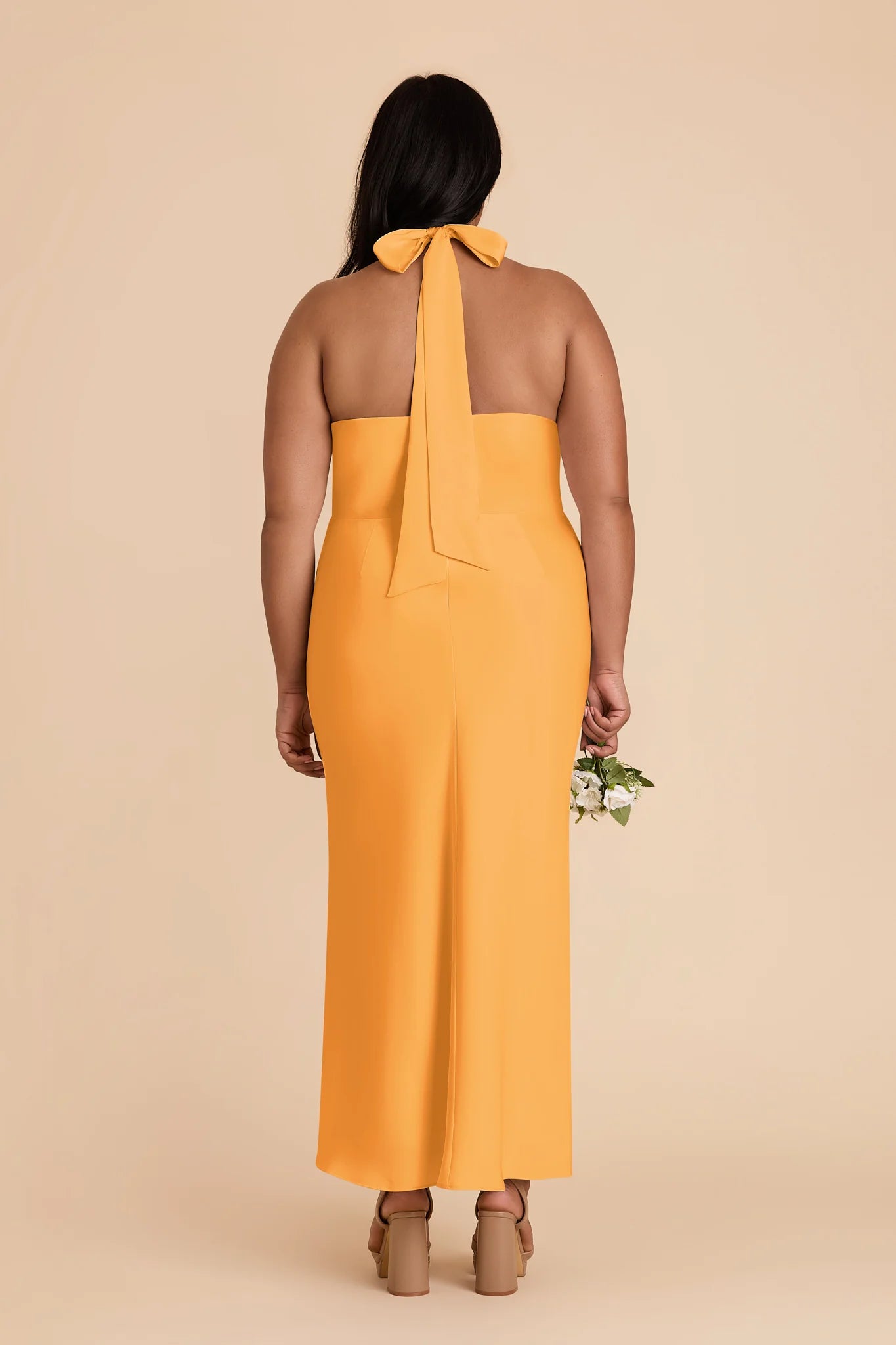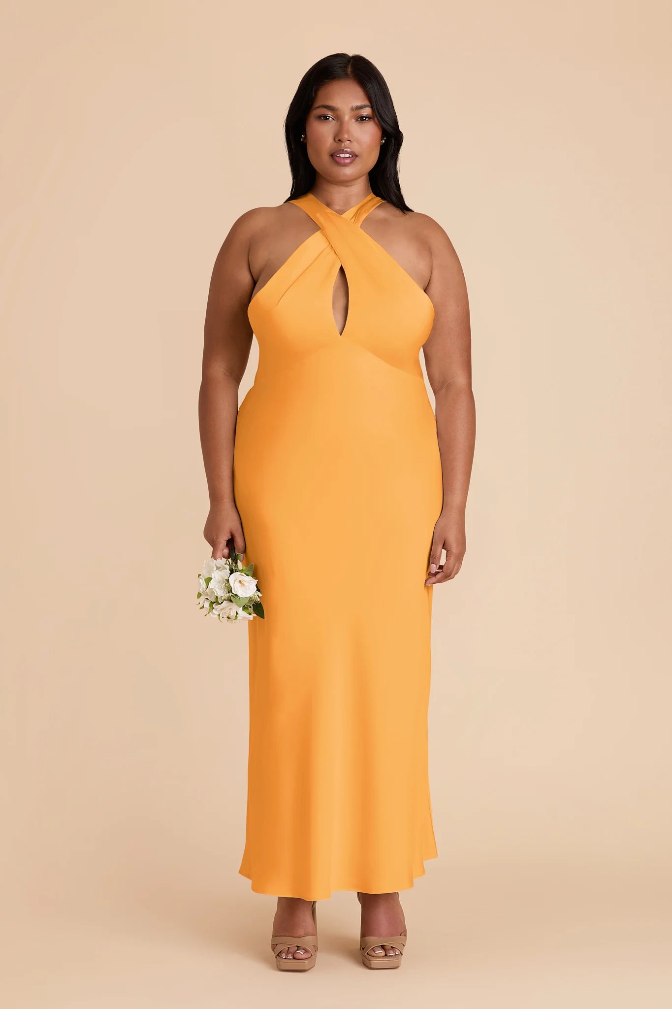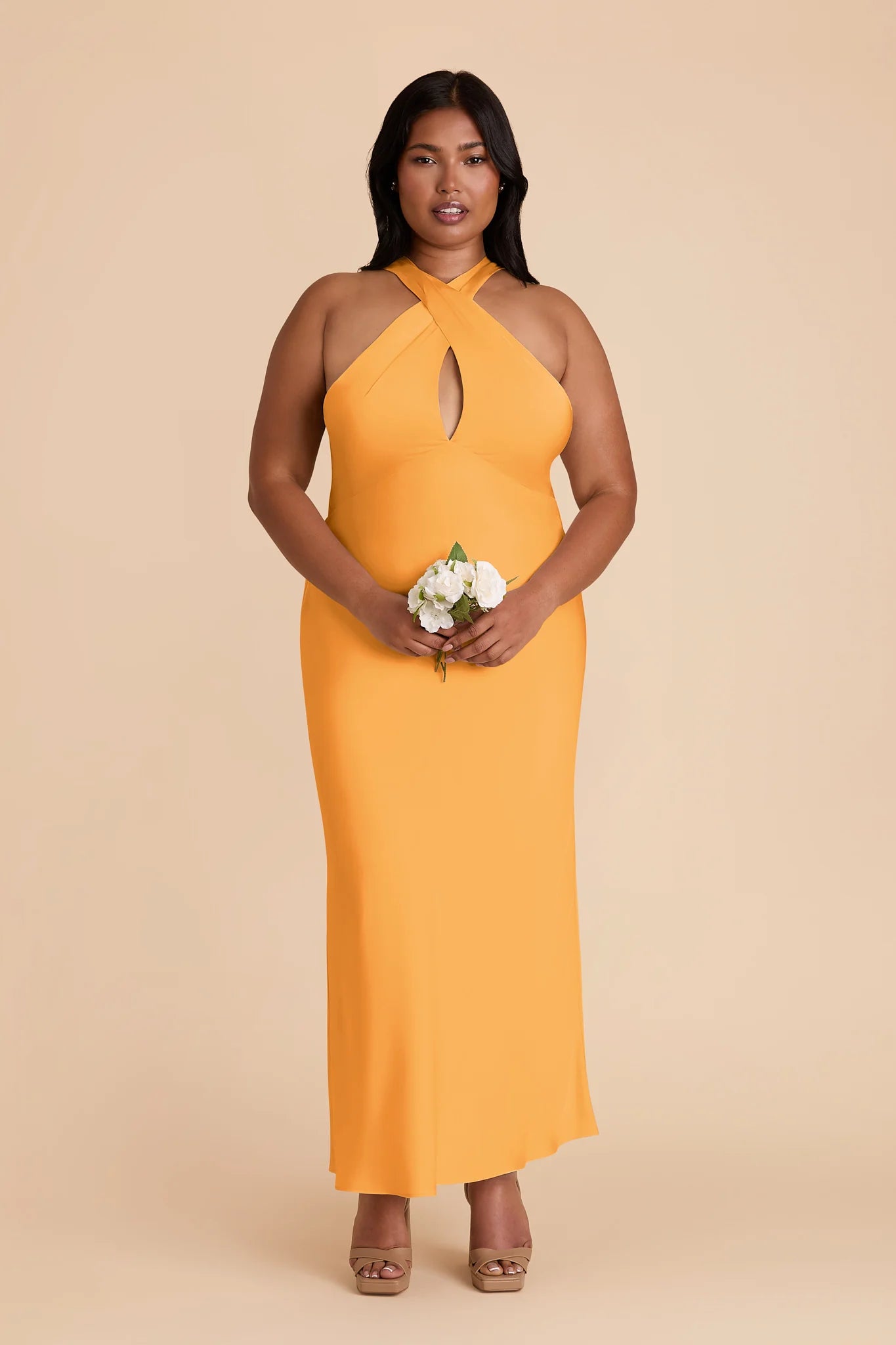 Hello, gorgeous! This dress features a beautiful crossover halter and a flattering midi length, perfect for any special occasion.