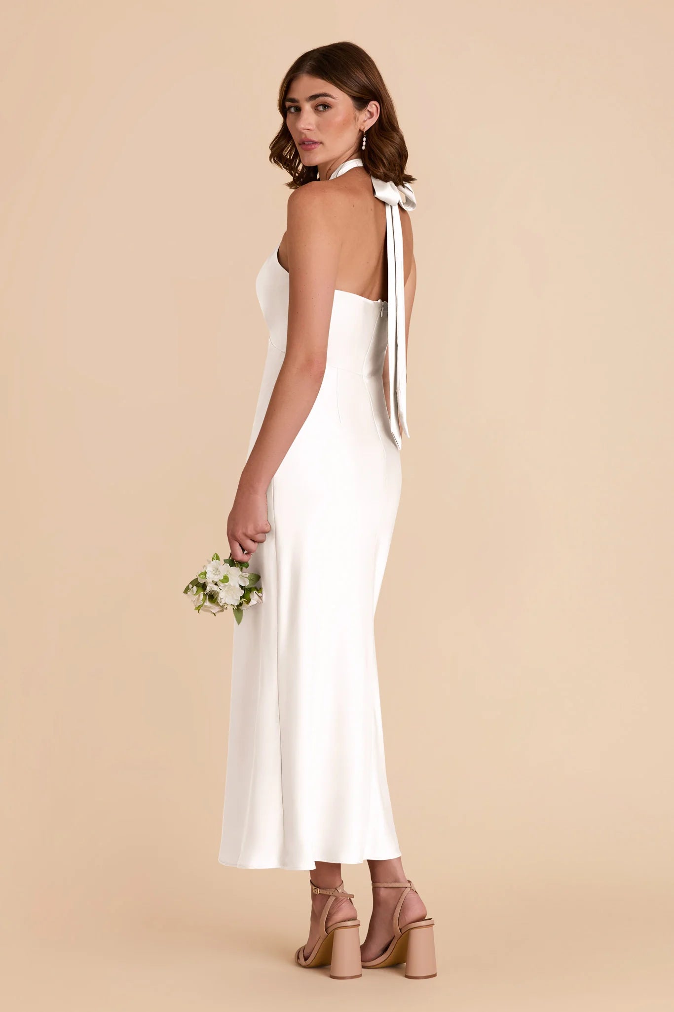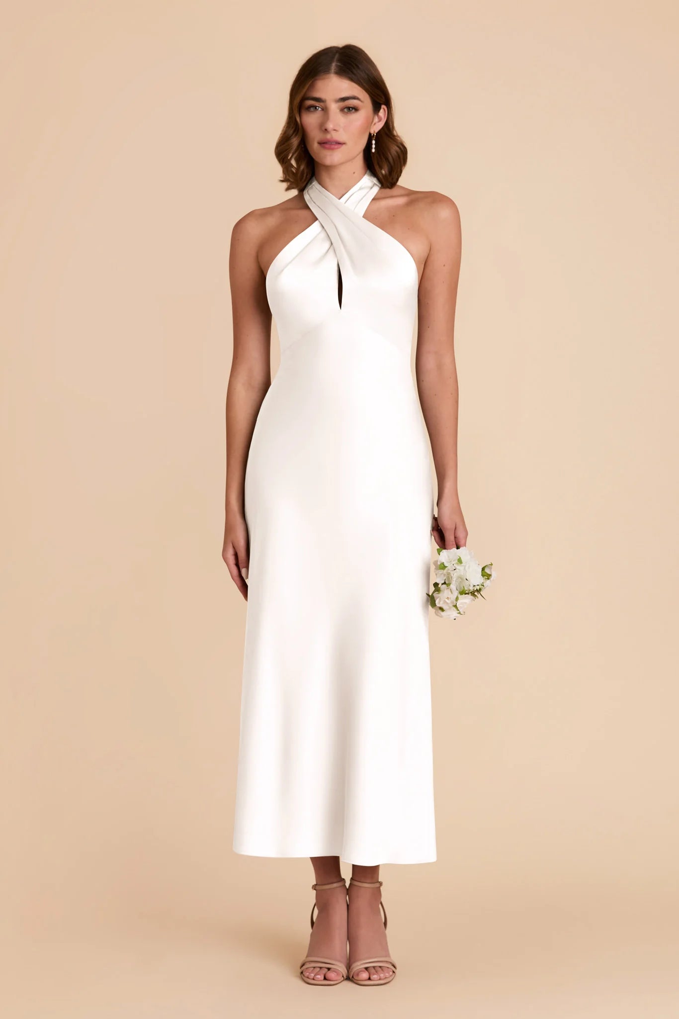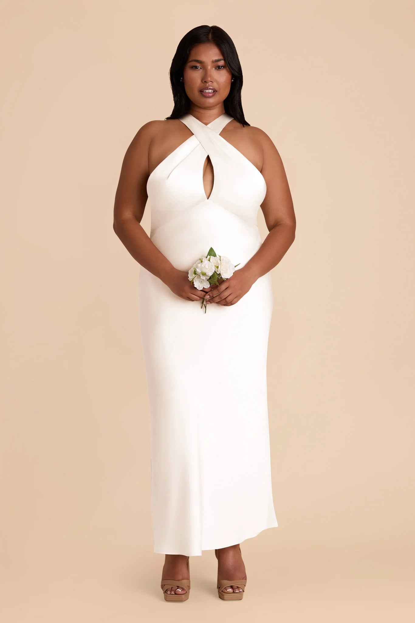 Hello, gorgeous! This dress features a beautiful crossover halter and a flattering midi length — perfect for any special occasion.