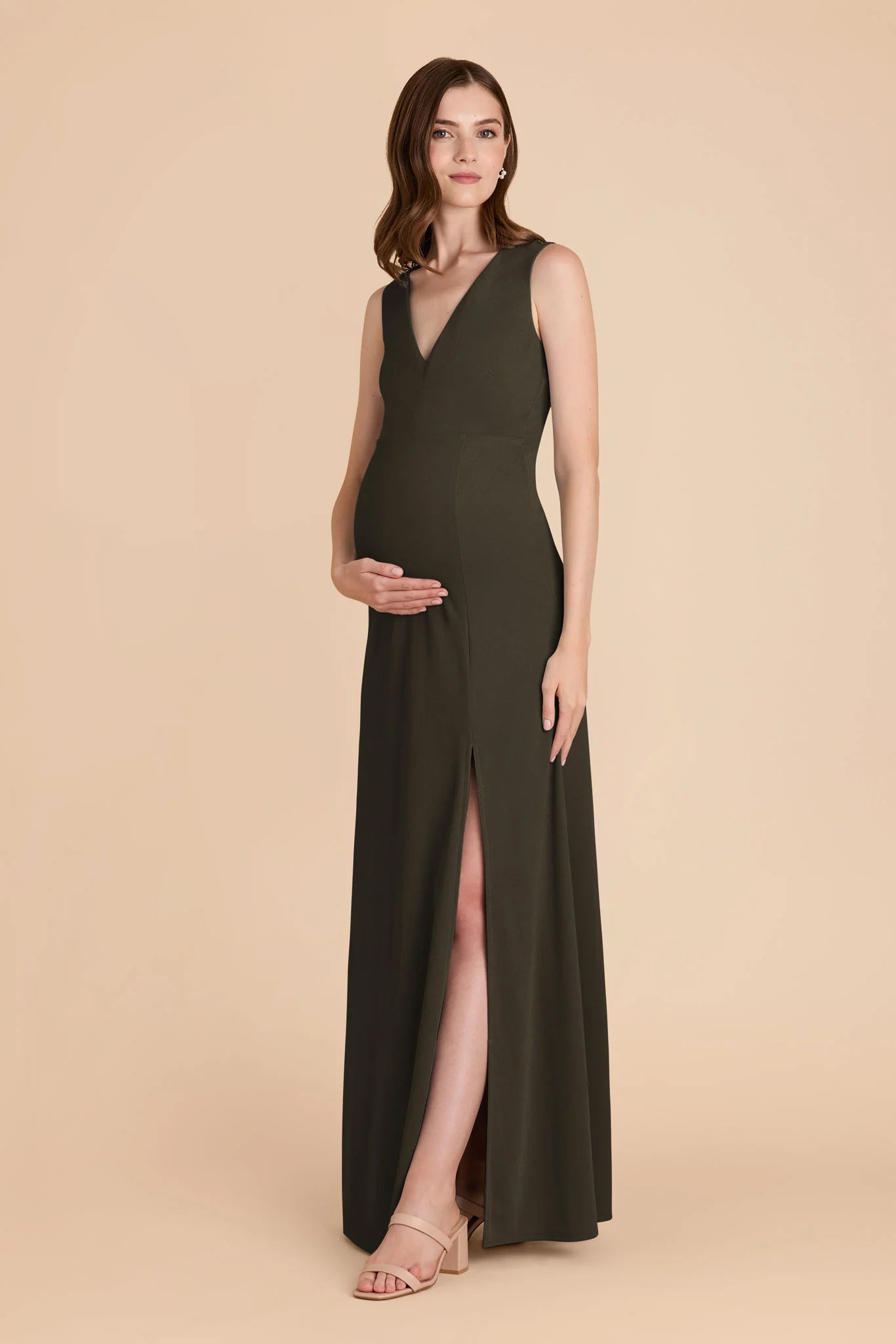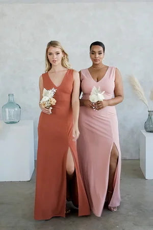 This dress is a total dream! The flattering V-neck, elegant A-line silhouette, and leg slit create a look that's both chic and comfortable.