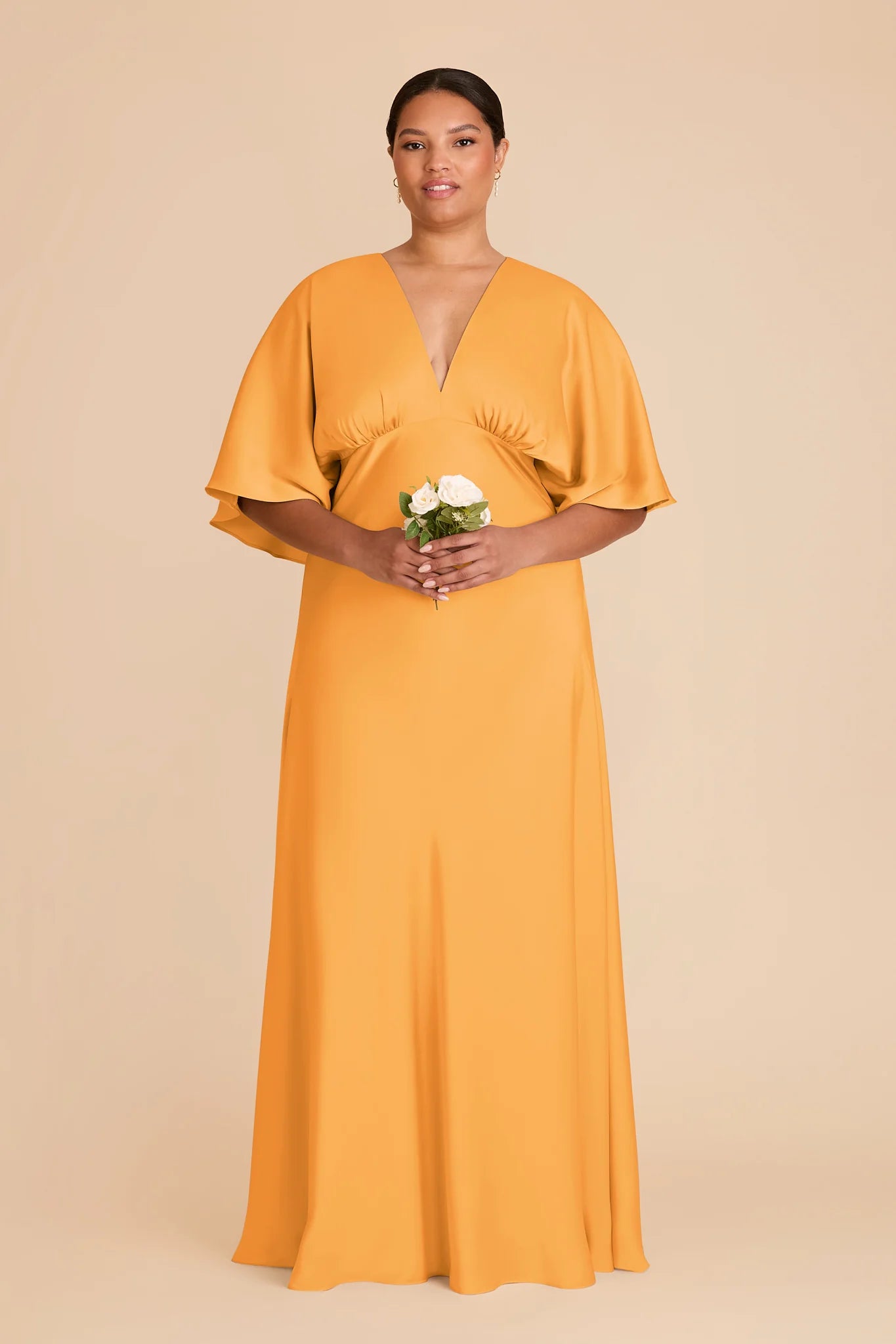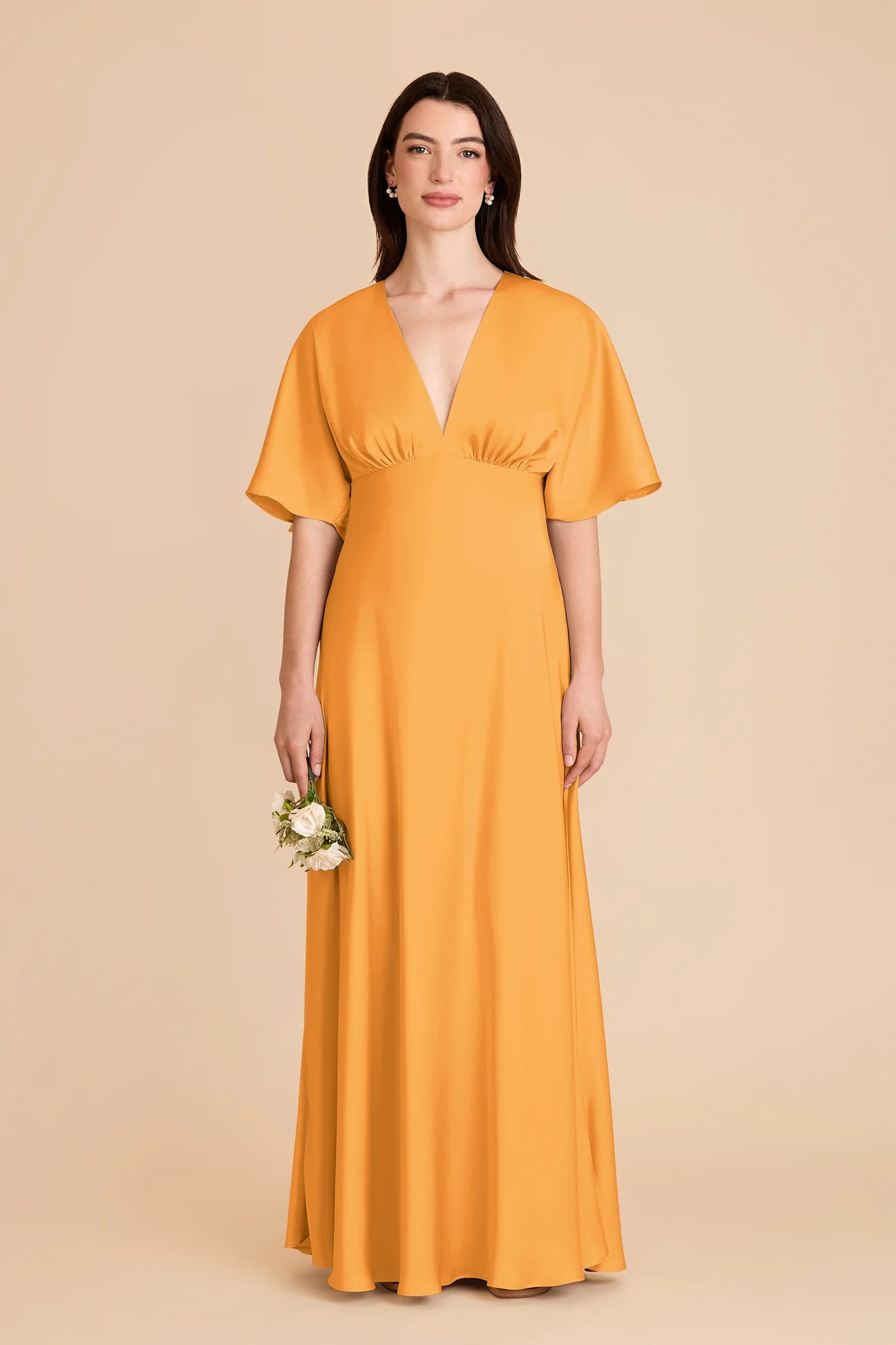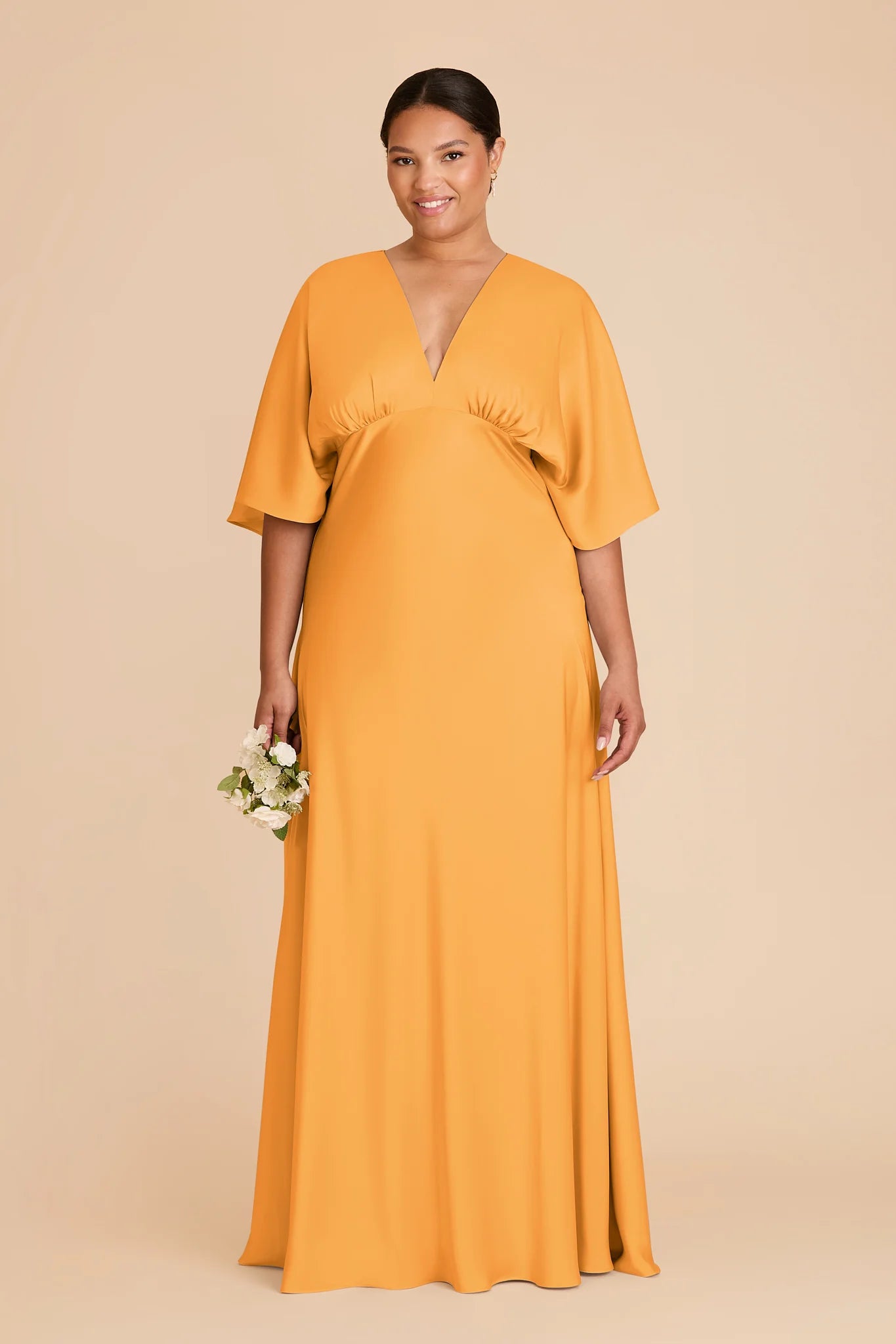 Modern sophistication meets timeless elegance in this floor-length gown‚ featuring a V-neck and kimono sleeves.