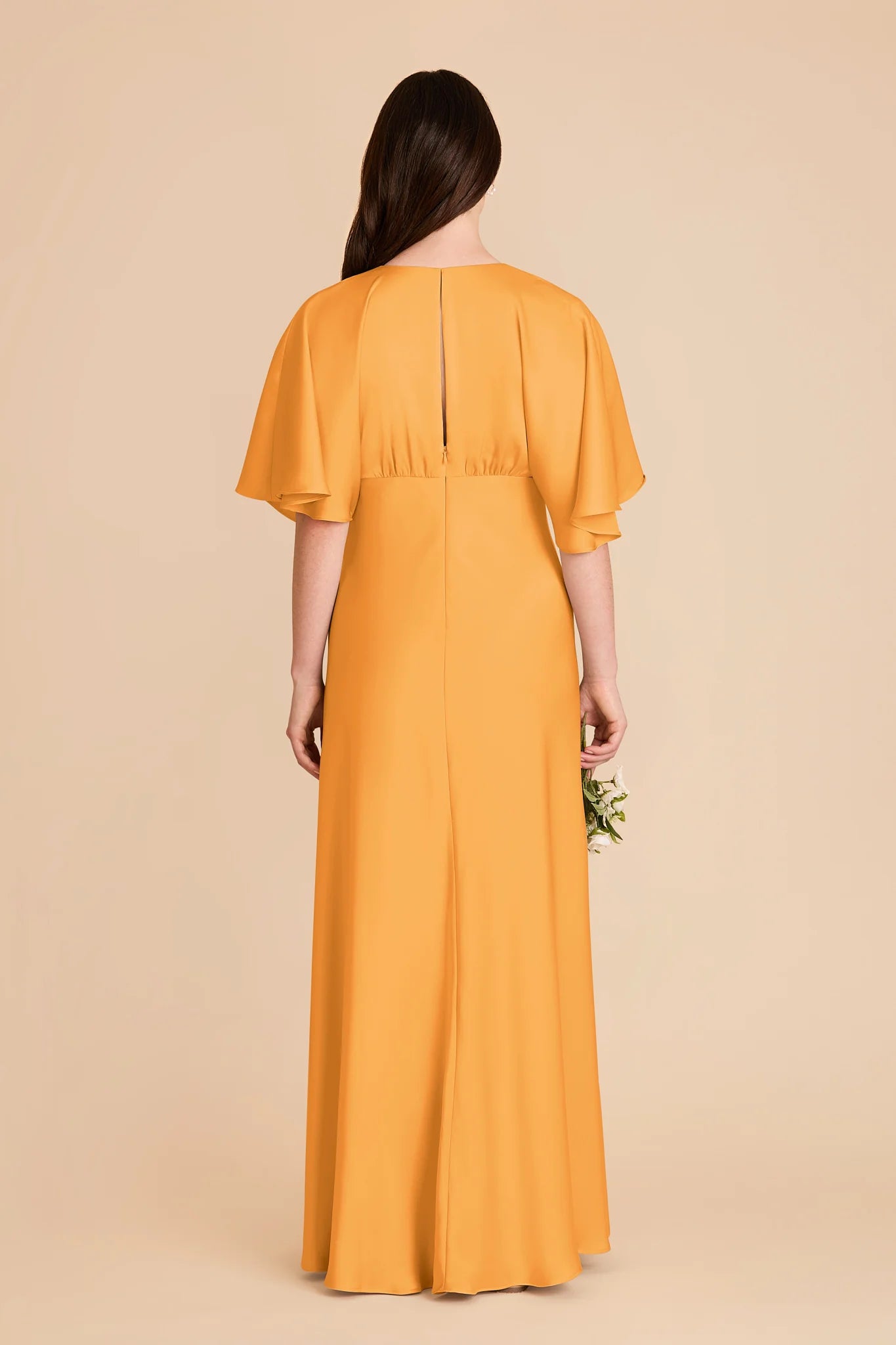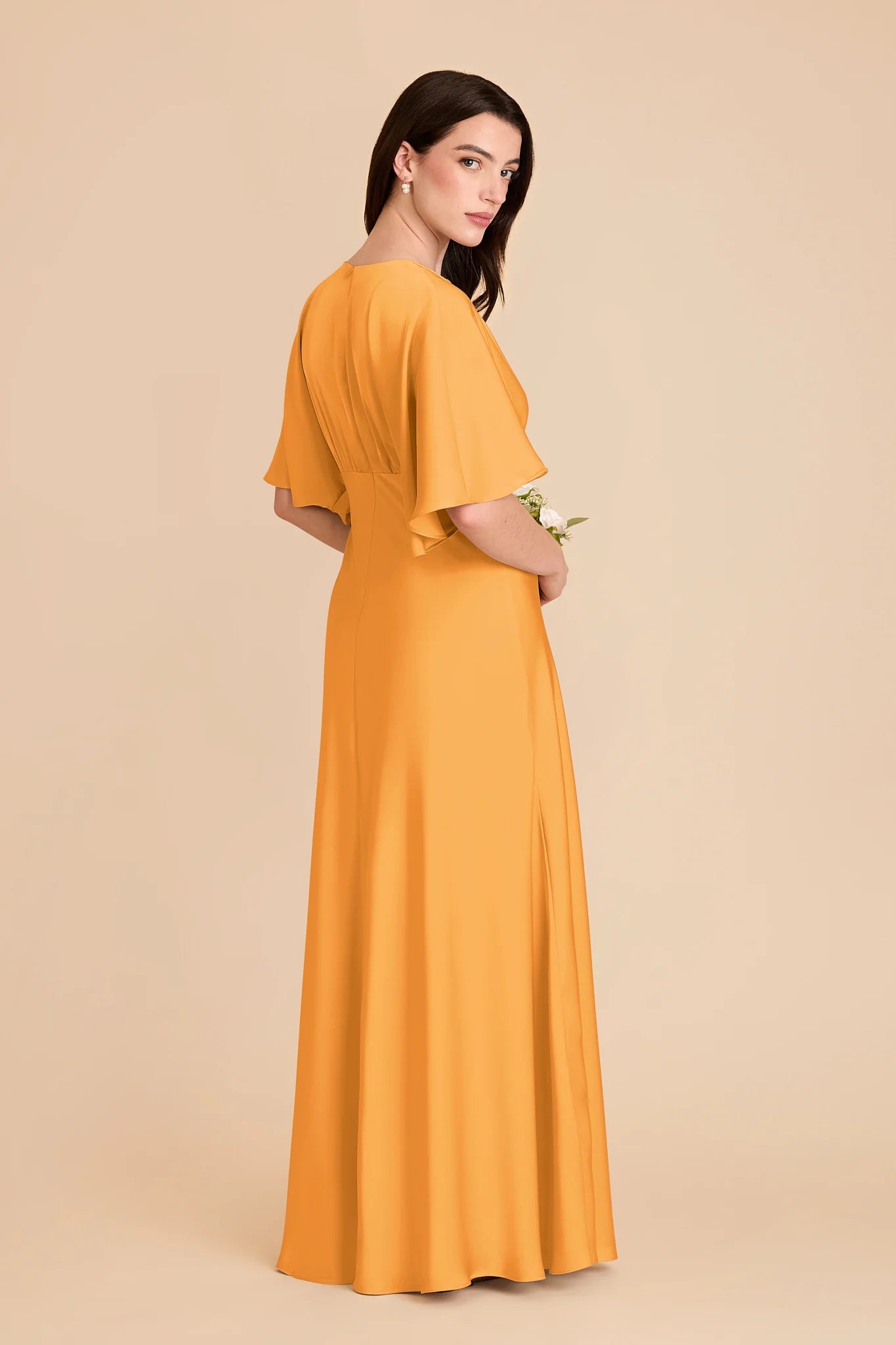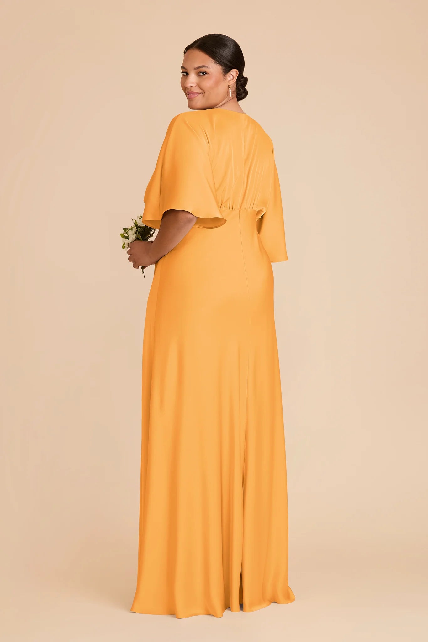Modern sophistication meets timeless elegance in this floor-length gown‚ featuring a V-neck and kimono sleeves.