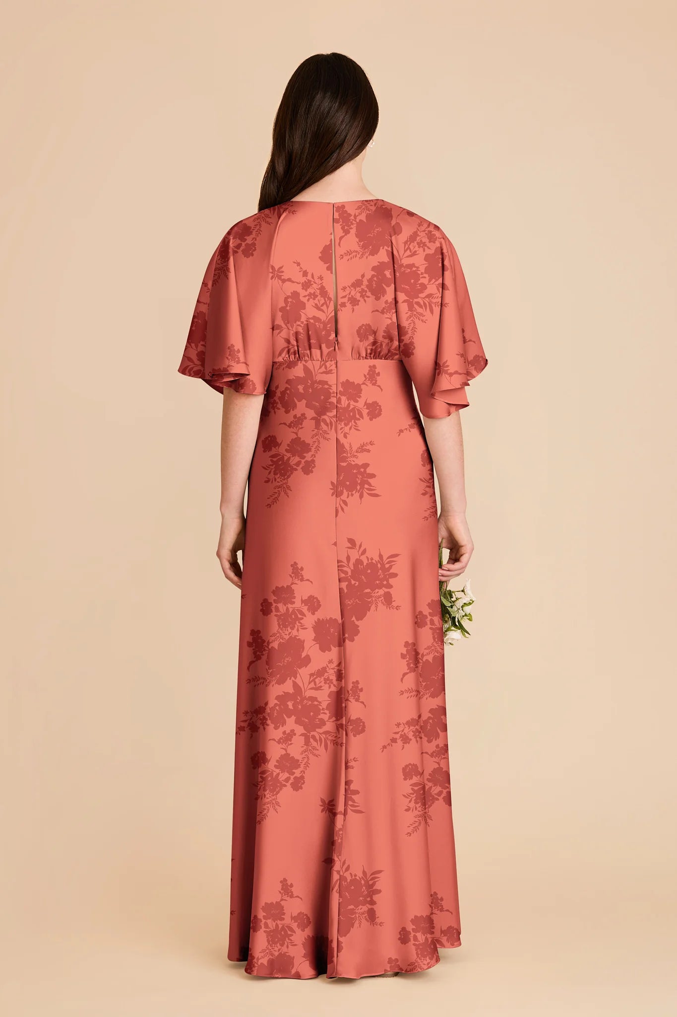 Modern sophistication meets timeless elegance in this floor-length gown‚ featuring a V-neck and kimono sleeves.