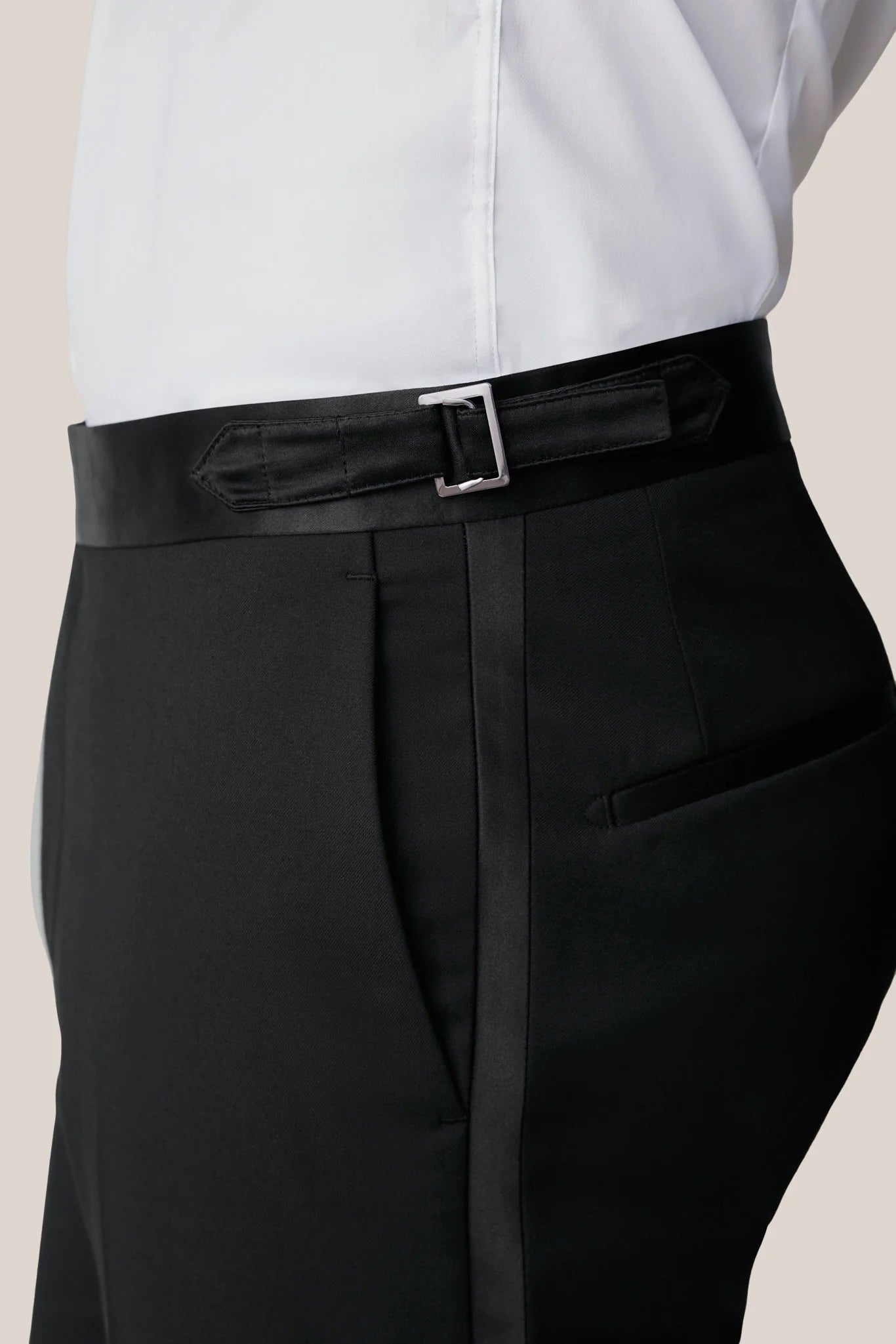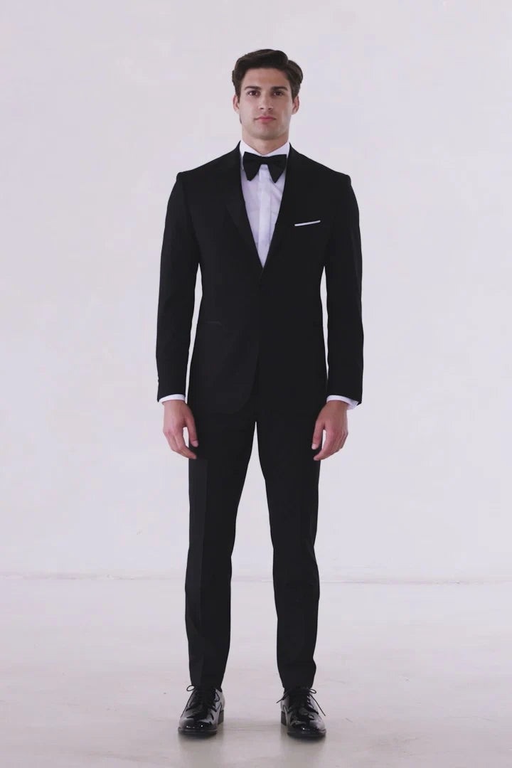 With refined details like satin lapels on the jacket and satin stripes on the pants, this tuxedo will live in your closet for years to come.