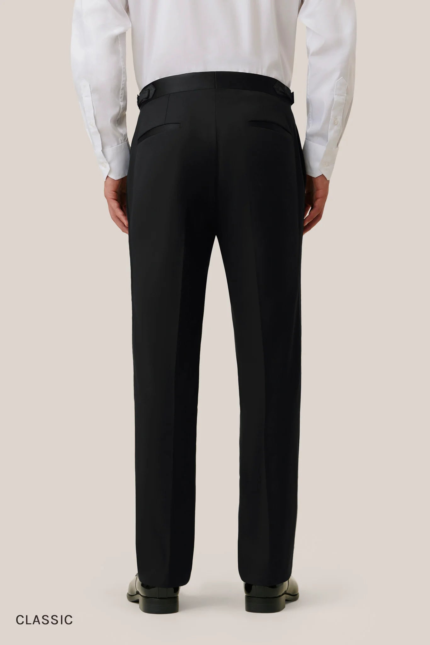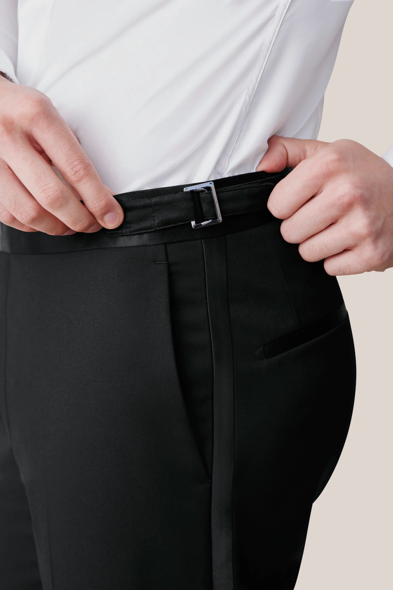 With classic satin stripes on each side, these tuxedo pants exude refinement.