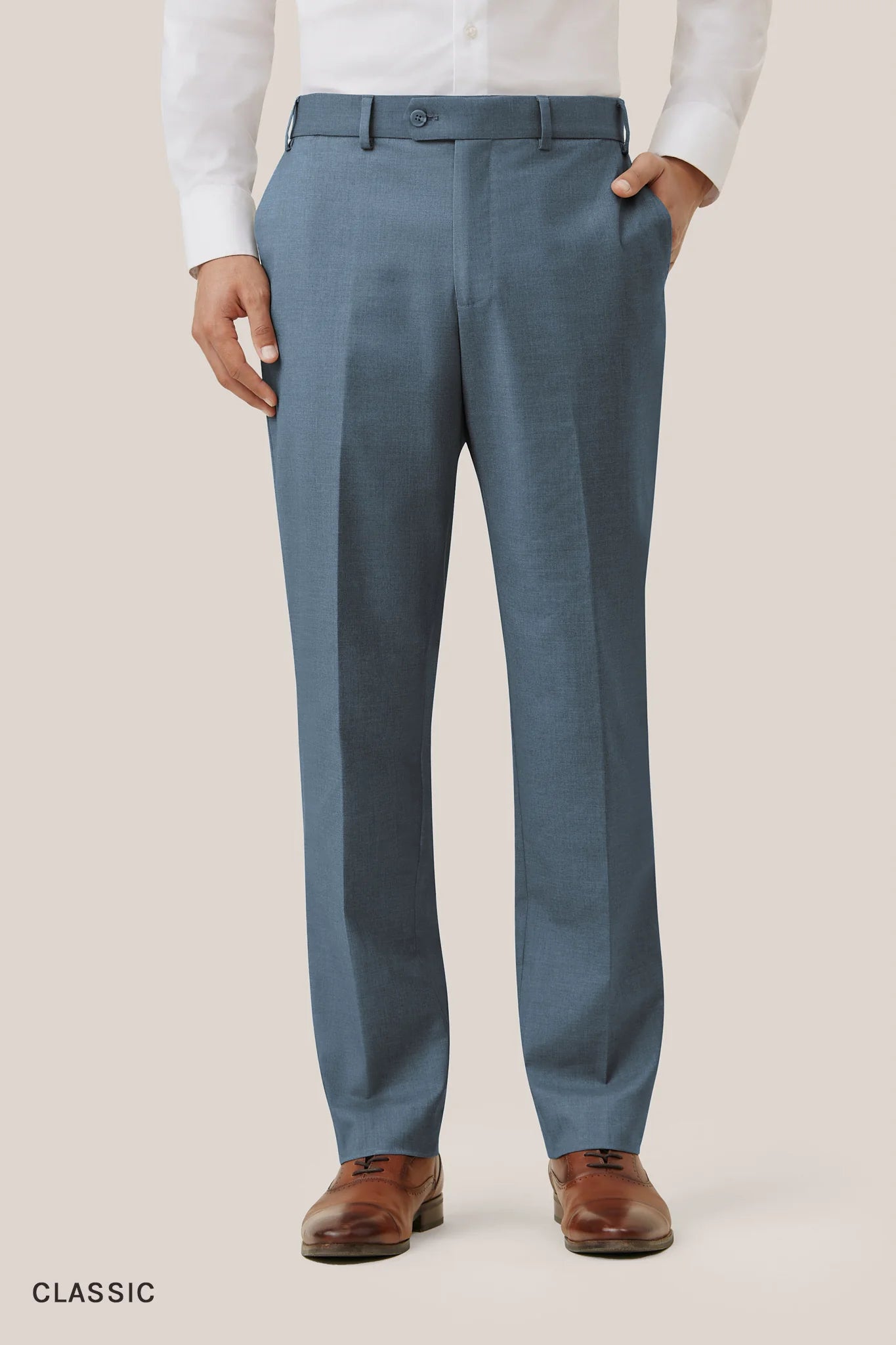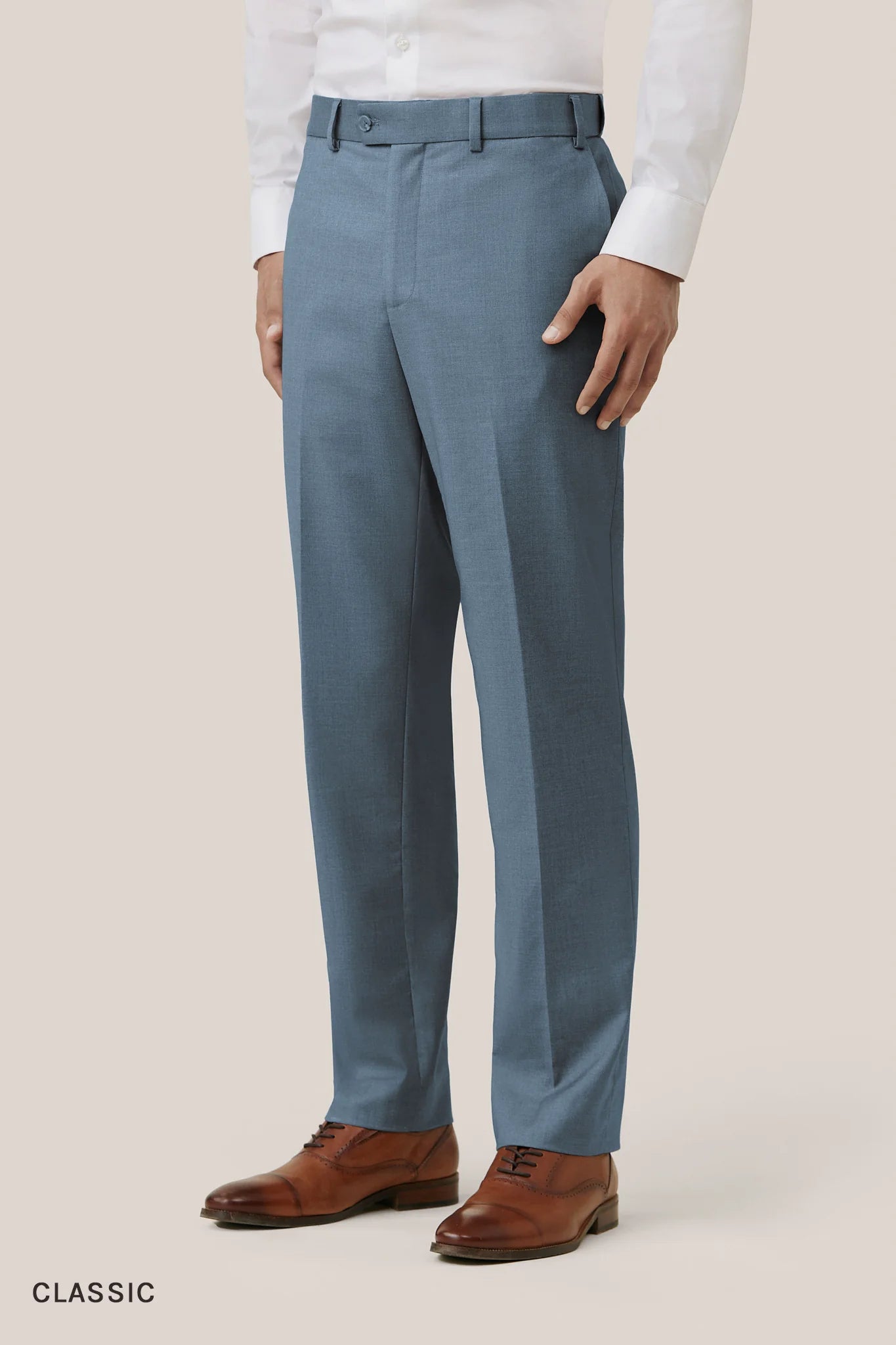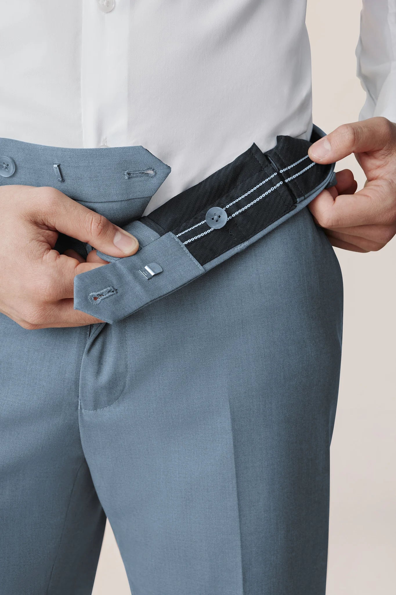 Looks structured, feels comfortable. Our suit pants feature a hidden elastic waistband for extra room.